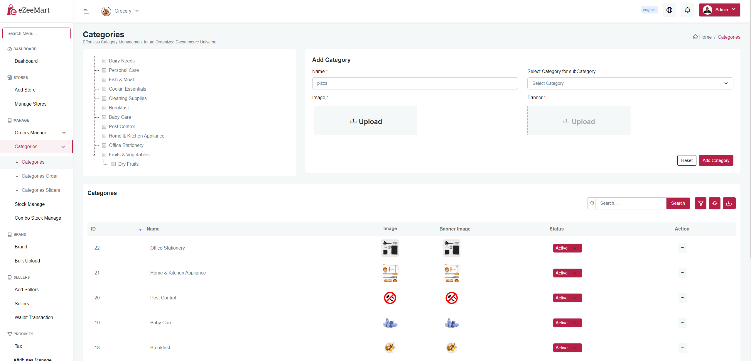 Here, you can add, view, and update the status of attributes. It will manage attributes category-wise. For example, if the category name is weight, you can create attributes like 500 g, 1 kg, 2 kg, and so on