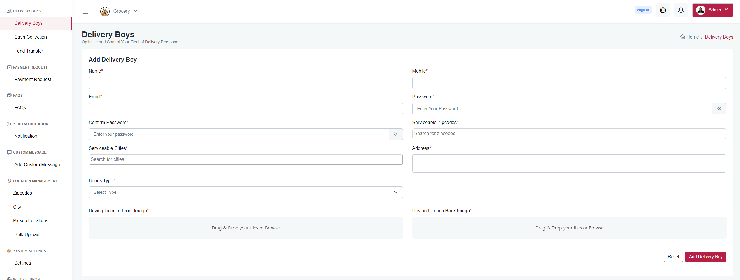 Here, you can create ZIP codes, set city name, set minimum delivery amounts, and specify delivery charges. You can also edit or delete existing ZIP codes