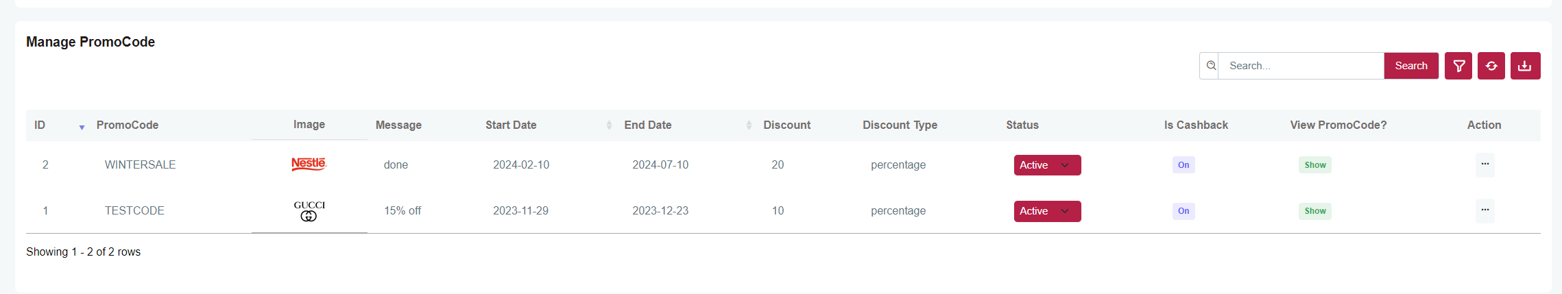 Here you can create promocode for specific time period, repeat usage allowed or not, is cashback promocode ,miminum order amount, maximum discount amount.